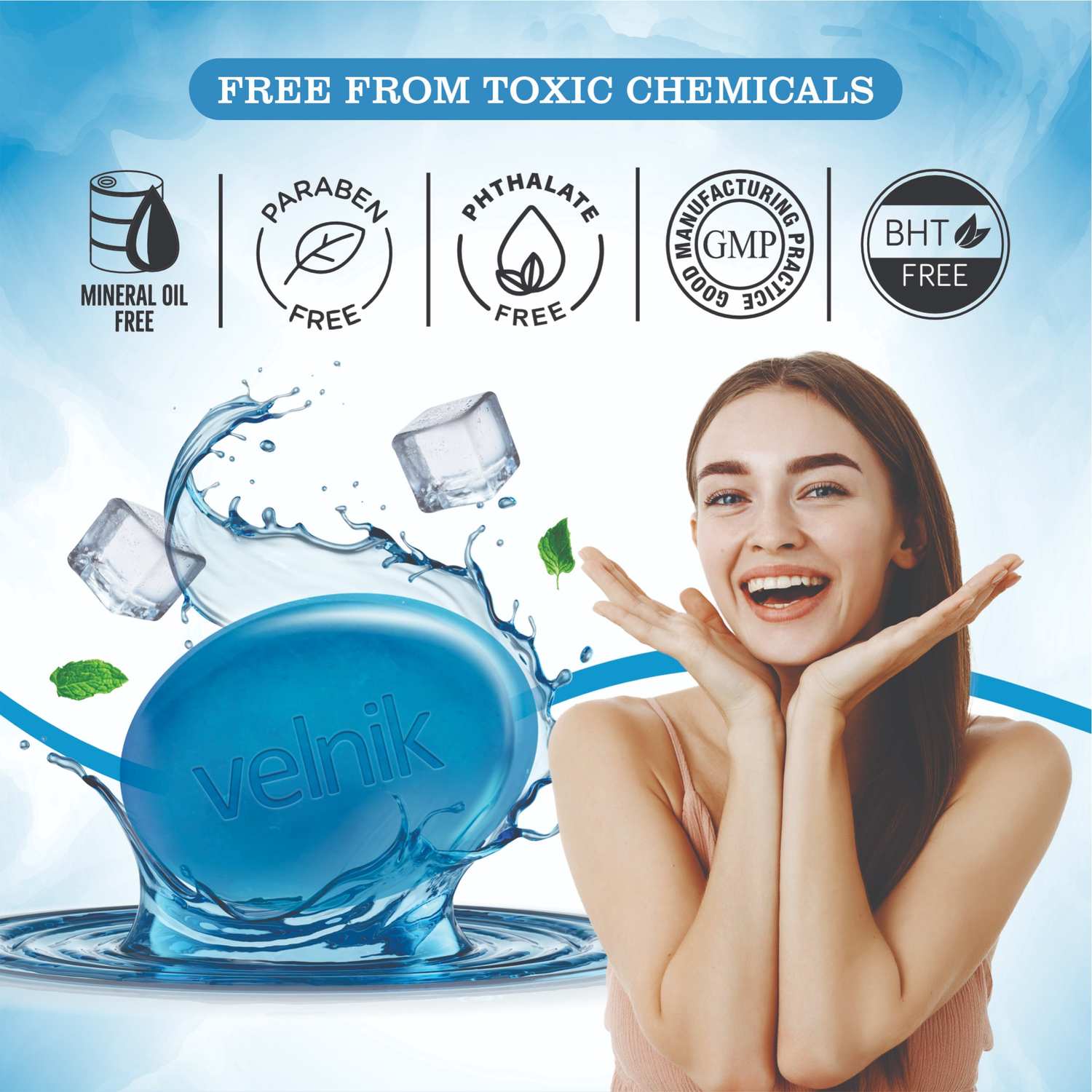 Velnik Mint Soap is a refreshing bathing soap for men and women, specially formulated to provide a deep cleanse while keeping your skin cool, fresh, and energized. Enriched with natural mint extracts, it effectively removes dirt, sweat, and excess oil, making it an ideal soap for oily skin.