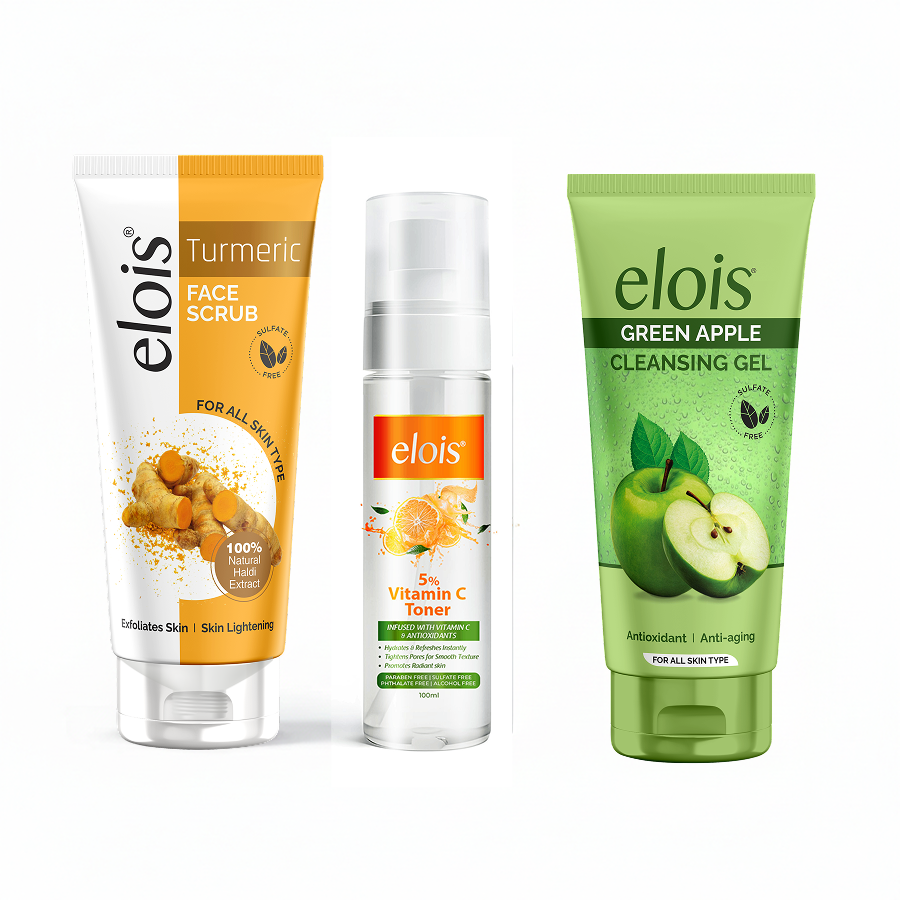 Say hello to soft, refreshed, clear, and glowing skin with the Elois Cleanse–Tone–Polish Glow Combo—your complete routine for daily cleansing, oil control, tan removal, and brighter glow.